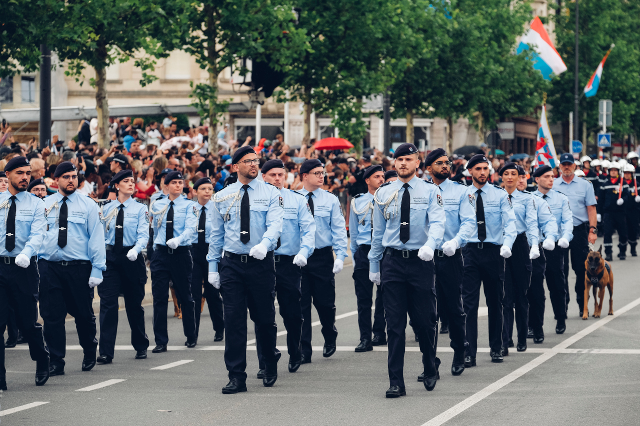 À l’occasion de la célébration de l’anniversaire de S.A.R. le Grand-Duc, le 23 juin 2025, 86 agents pénitentiaires ainsi que deux maîtres-chiens de l’Administration pénitentiaire ont pris part au défilé non militaire organisé sur l’avenue de la Liberté.