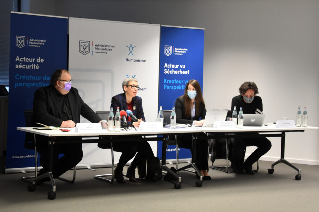 (de g. à dr.) Serge Legil, directeur de l’Administration pénitentiaire ; Sam Tanson, ministre de la Justice ; Martine Wagner, Administration pénitentiaire et Laurent Graas, directeur stratégique de l’agence lola